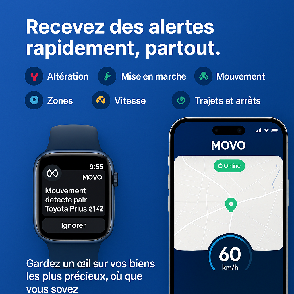 • Alertes mouvement, survitesse, géo-clôture, débranchement